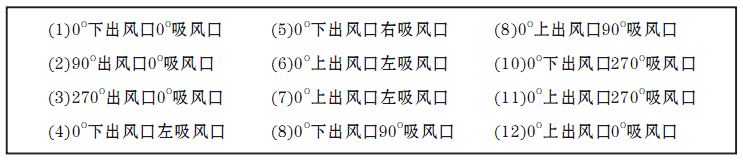 注:訂貨時還應注明風機的進出風口位置編號,出風口位置編號,詳見風柜進、出風口對照表。