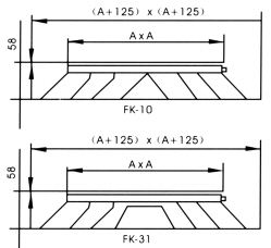 | 180×180 | 235 | 1.12 | 350 | 1.52 | 470 | 1.97 | 585 | 2.31 | 700 | 2.60 |